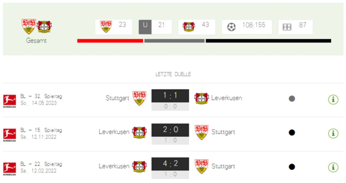 - «Штутгарт» не побеждал у «Байера» с апреля 2018 года — это их единственная победа за последние 22 матча с «фармацевтами».