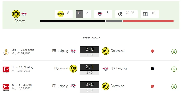 - За семь сезонов, прошедших с момента выхода «РБ Лейпцига» в Бундеслигу в 2016 году, эти команды шесть раз занимали второе место в Бундеслиге: «РБ Лейпциг» — 2 раза, «Боруссия» Дортмунд — четыре раза.