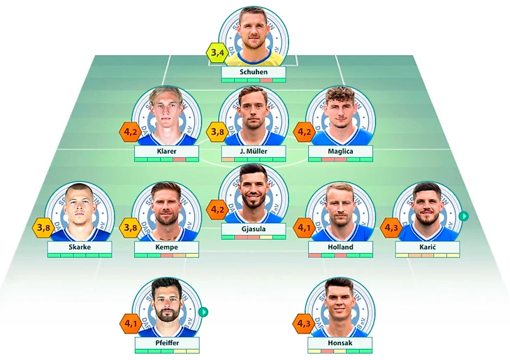 «Хайденхайм»: Müller - Traoré, Mainka (c), Gimber, Föhrenbach - Schöppner, Theurkauf - Dinkçi, Pieringer, Beste - Kleindienst