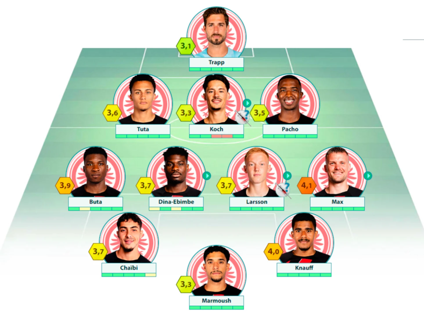 «Айнтрахт Ф»: Trapp (c) - Tuta, Koch, Pacho - Buta, Dina Ebimbe, Larsson, Max - Chaïbi, Knauff - Marmoush