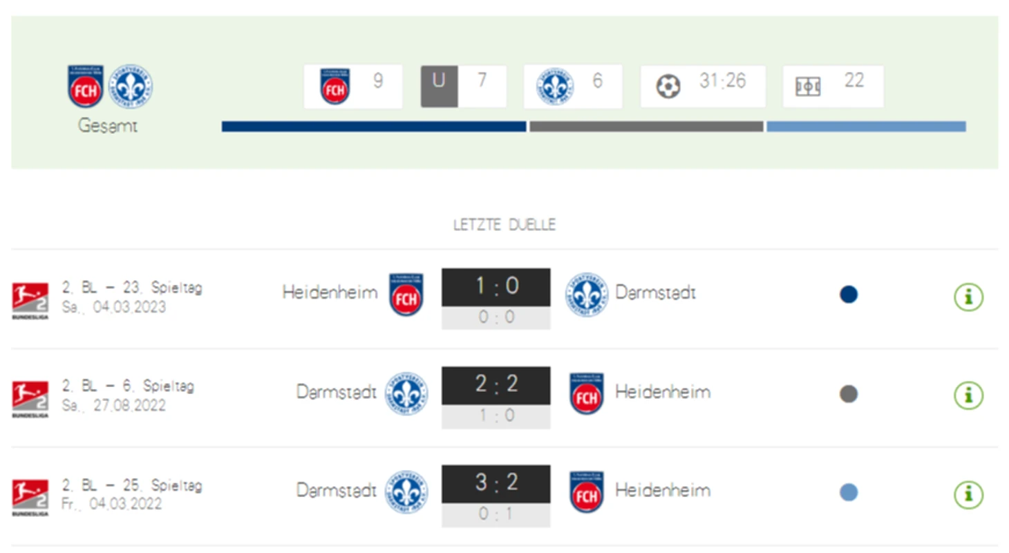 - «Хайденхайм» потерпел 8 поражений в 13 матчах в этом сезоне и располагается выше на 2 очка, чем «Дармштадт».
