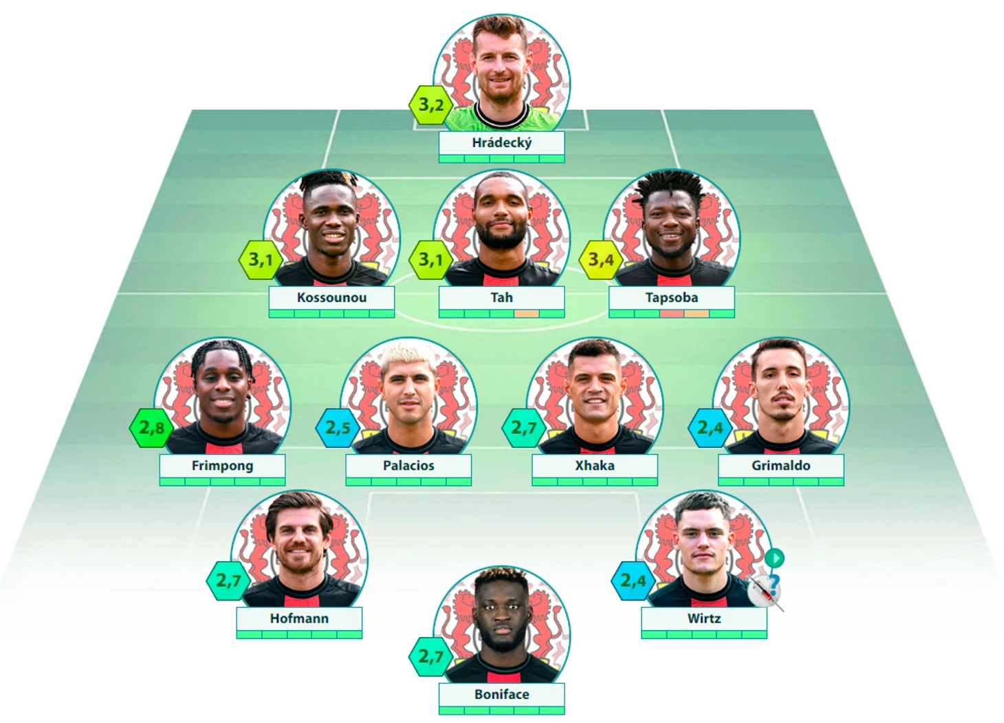 «Байер»: Hrádecký (c) - Kossounou, Tah, Tapsoba - Frimpong, Palacios, Xhaka, Grimaldo - Hofmann, Adli - Boniface