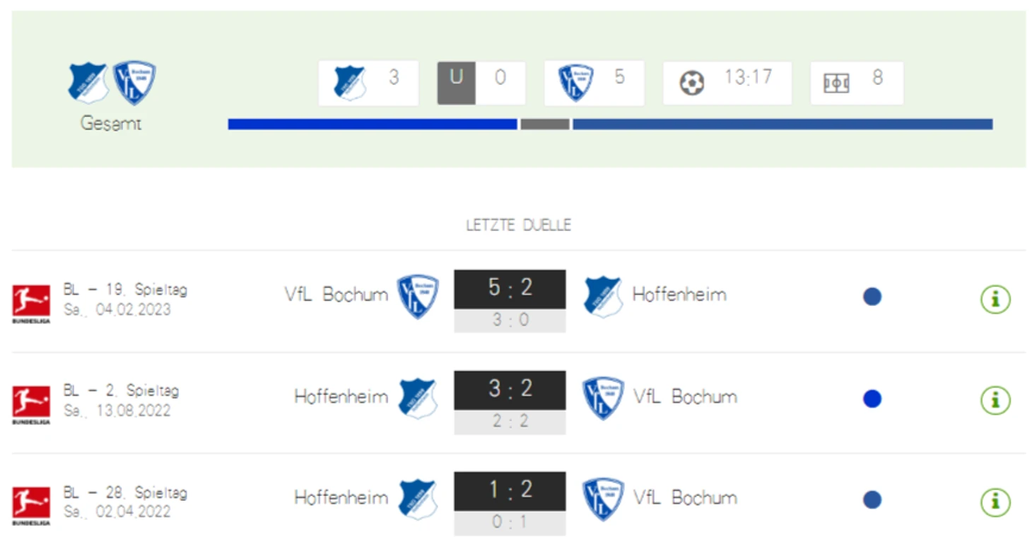 - «Хоффенхайм» не побеждает в четырёх матчах подряд, а «Бохум», наоборот, не проигрывает в 5 последних матчах.