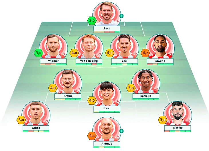 «Майнц»: Batz - Widmer (c), Van den Berg, Caci, Mwene - Barreiro, Krauß - Gruda, Lee, Richter - Ajorque
