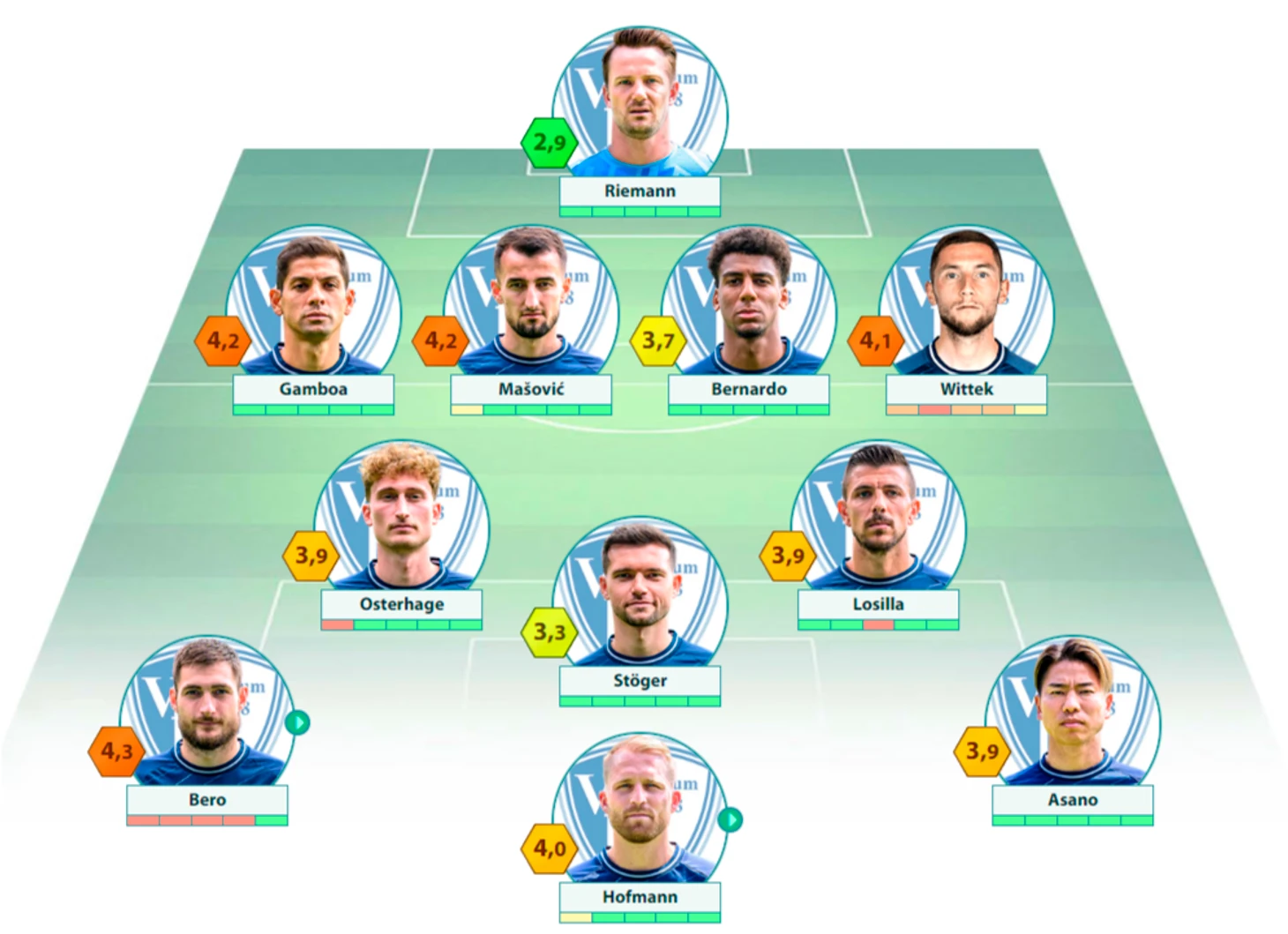 «Бохум»: Riemann - Gamboa, Mašović, Bernardo, Soares - Osterhage, Losilla (c) - Bero, Stöger, Asano - Hofmann