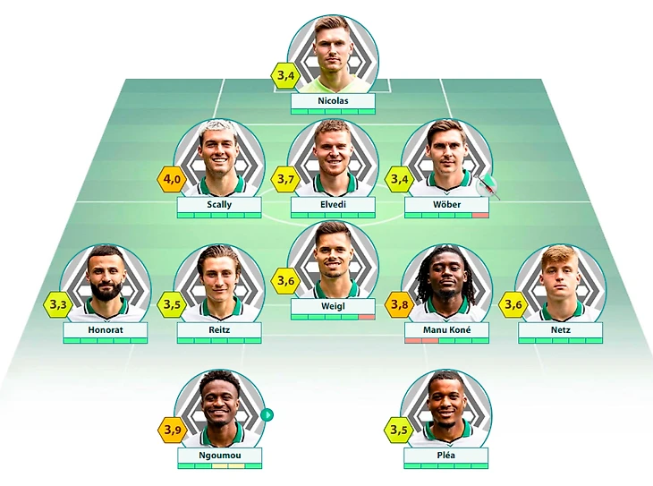 «Боруссия М»: Nicolas - Scally, Elvedi, Wöber - Honorat, Reitz, Weigl (c), Koné, Netz – Ngoumou, Pléa
