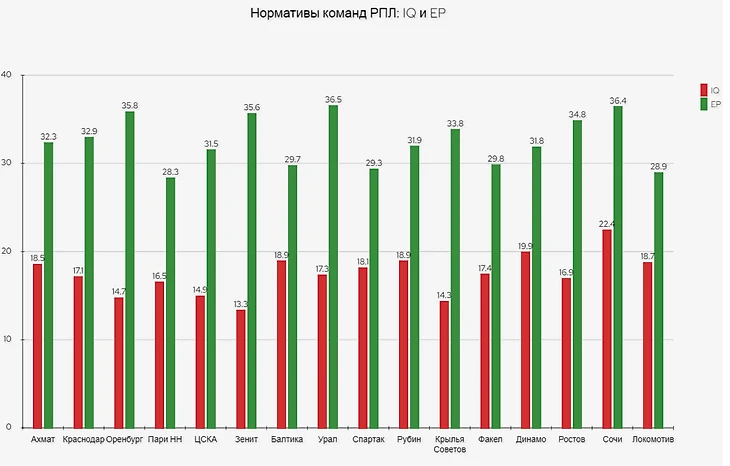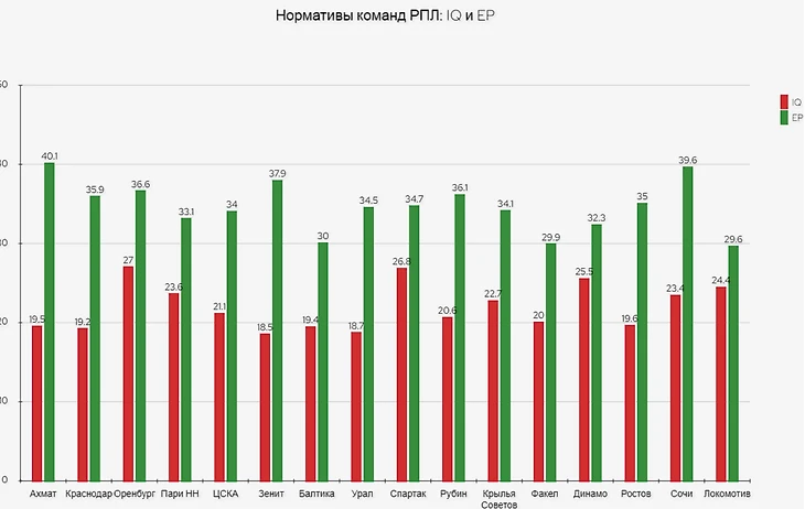 Но, сегодня мы поговорим еще об одной статистической норме, которую я вывела для команд РПЛ по итогам первого круга чемпионата.