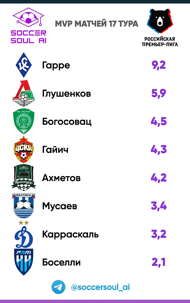 Под знаком «хорошей» атакующей игры тур закрыли Богосовац, Гайич и Ахметов. При этом, игрок Ахмата стал единственным в этой восьмёрке лучших, кто не угрожал непосредственно воротам соперника, но был хорош в поддержке партнёров. Наиболее универсальным на поле из этой тройки оказался Ахметов.