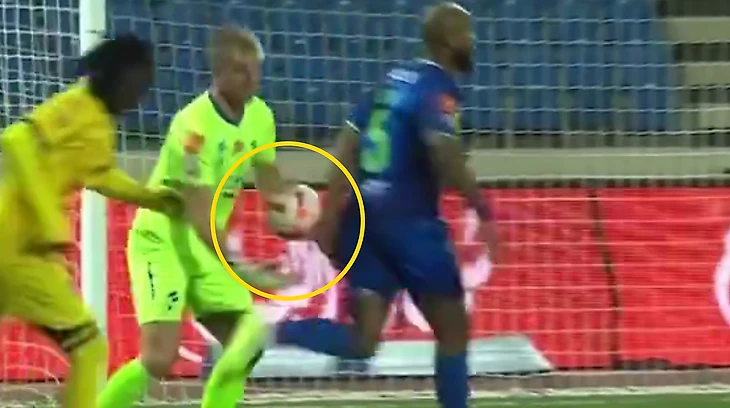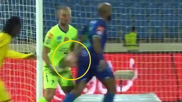 Когда вратарь «Аль-Фатеха» завладел мячом, его партнер хотел дотронуться до него, чтобы немного приободрить. Только случайно задел мяч рукой – судья все увидел и назначил пенальти за игру рукой.