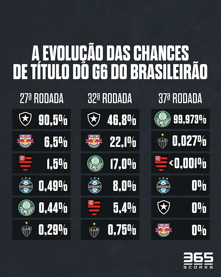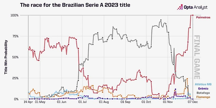 После ничьей с «Атлетико Паранаэнсе» 22 октября титул казался неизбежным. «Ботафого» наверняка выиграет лигу: суперкомпьютер Опта и другие считал их безоговорочными фаворитами (94,3%,которым может помешать только чудо).