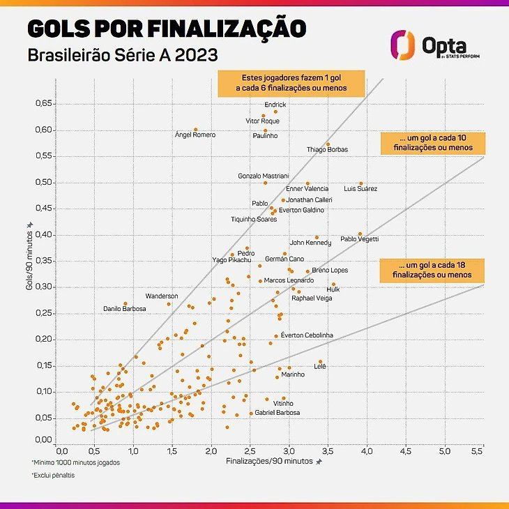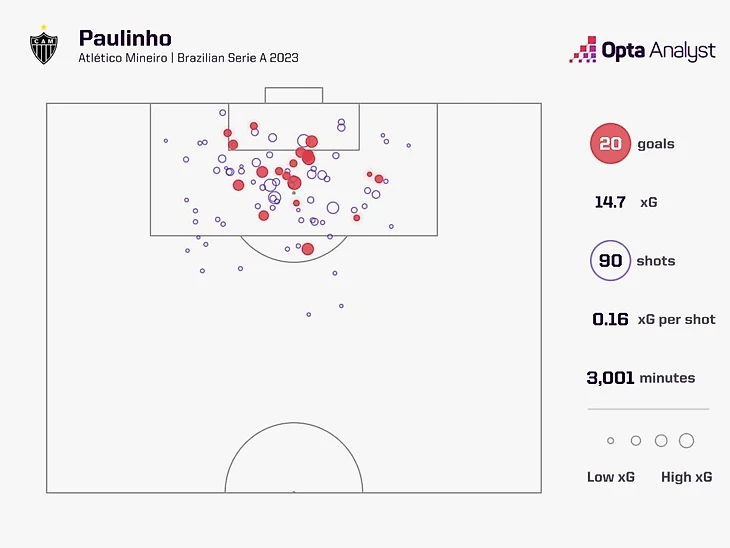 Паулиньо завершил турнир лучшим бомбардиром с 20 голами, при этом у него был самый высокий показатель ожидаемых голов (xG) в турнире (15,1). Нападающий превысил свои показатели благодаря великолепной точности – среди игроков, нанесших более 50 ударов, он единственный попал в створ в более чем половине случаев (53,3%).