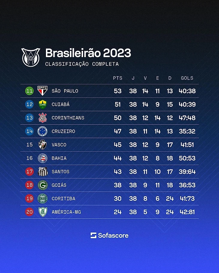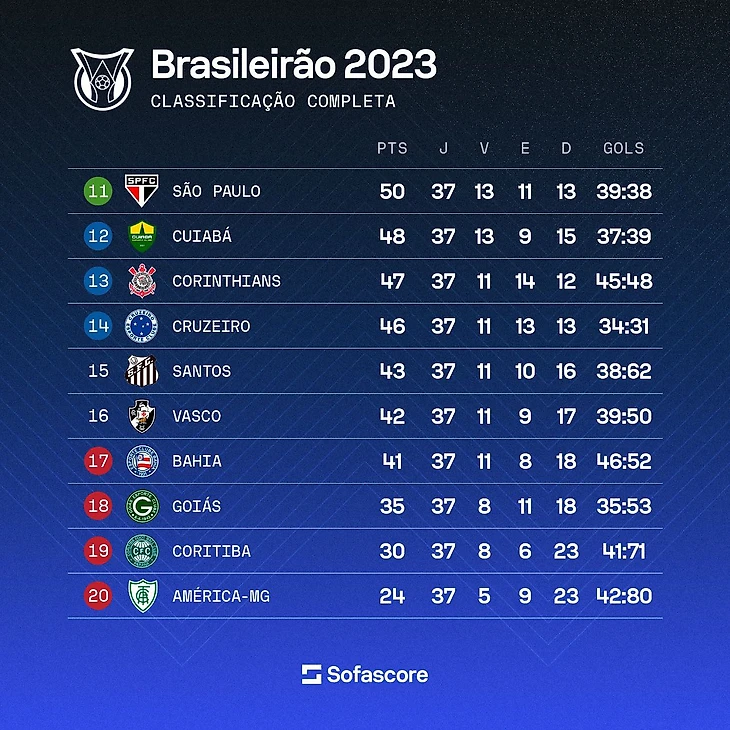 Отрицательные цифры достигли своего пика после поражении от «Интернасьонала» со счетом 7-1, что стало худшим показателем в Бразилейрао с 2005 года, когда так же влетели от «Коринтиансу». Однако ужасное поражение 22 октября выглядело как изменение ситуации к лучшему для «Сантоса». После этого позорного поражения они провели беспроигрышную серию из семи игр (3 победы и 4 ничьи) и появился реальный шанс избежать вылета.