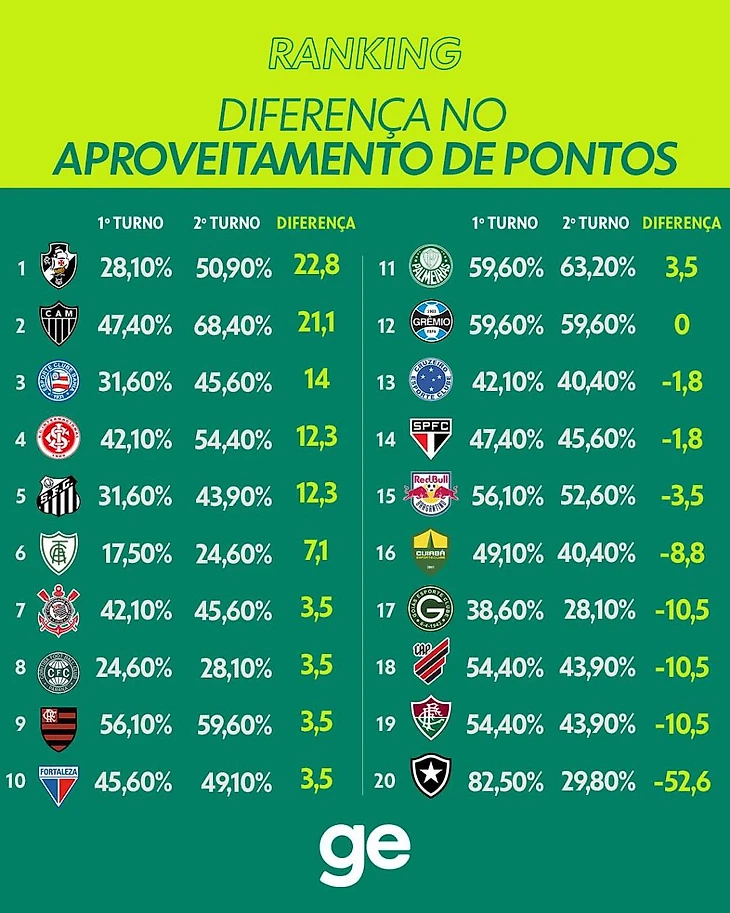 Несмотря на взлеты и падения непредсказуемого сезона, Вердао был командой, которая всегда оставалась близкой к вершине. «Палмейрас» вылетел из первой четверки только в трех турах (14, 15 и 27). После домашнего поражения от «Атлетико Минейро» в 27-ом туре, которое последовало за вылетом из полуфинала Либертадорес, они в последний раз выпали из четверки лучших и оказались на 14 очков позади «Ботафого», идущего на первом. Зеленая торсида почти подавляющим большинством согласились с тем, что второго титула подряд не будет.