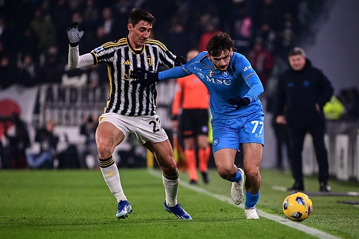 Удивительно, но компактно действовавший до 26-й минуты «Ювентус» провалился в обороне. Виктор Осимхен с правого фланга вырезал пас на Кварацхелию, который оказался в полном одиночестве перед воротами Щенсного, получив стопроцентный «буллит». Поляк, выйдя навстречу, смутил грузинского легионера, запустившего мяч на трибуну. Как Хвича не забил — остаётся загадкой. Но очевидно, что этот момент выбил форварда из колеи: уже в компенсированное время Кварацхелия не смог сдержать эмоций, не пожелав отдавать мяч на бровке Федерико Гатти и швырнув его защитнику в спину. Даниэле Орсато был неумолим: жёлтая карточка за неспортивное поведение.