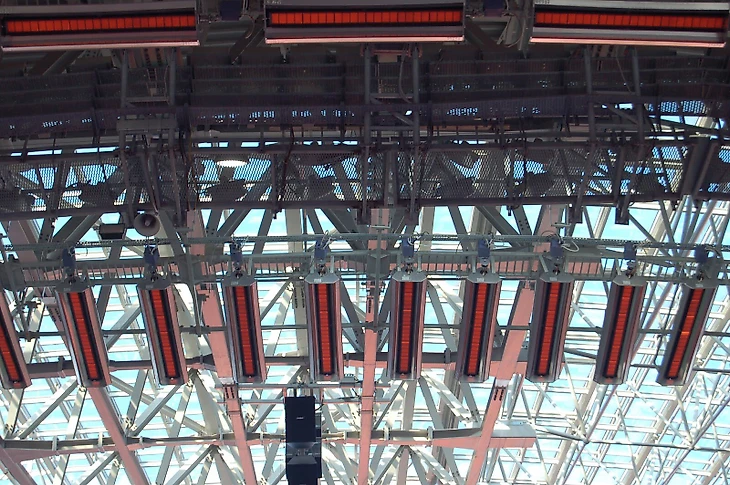 Система инфракрасного подогрева (когда тепло идет от больших раскаленных экранов) бывает двух видов: на электричестве и на газу. На территории СНГ есть две арены открытого типа, на которых установлено такое оборудование. В обоих случаях инженеры выбрали газ, одна из арен несколько лет принимает матчи РПЛ. Еще одна арена в РПЛ обсуждает газовую систему (обо всем этом – ниже).