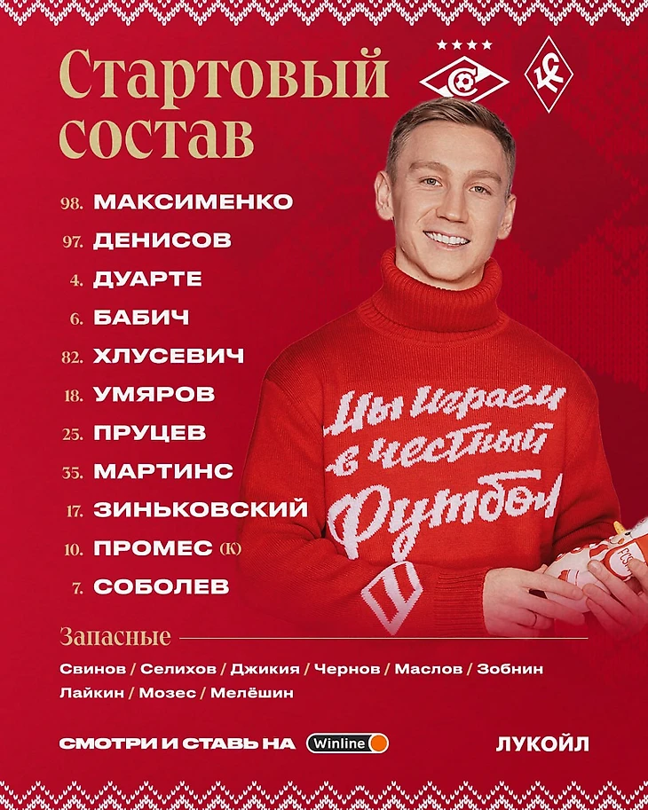 Красно-белые сегодня сыграют в специальной форме — с шапочками на фамилиях и снегом ❄️