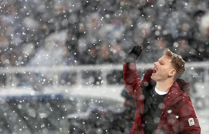 С «Локомотивом» (1:1) рано удалили Хлусевича, с «Факелом» (0:2) мучились в грязи, с «Балтикой» (2:0) – в сугробах, с «Ахматом» – с Беришей, с «Крыльями» (3:0) – с морозом.
