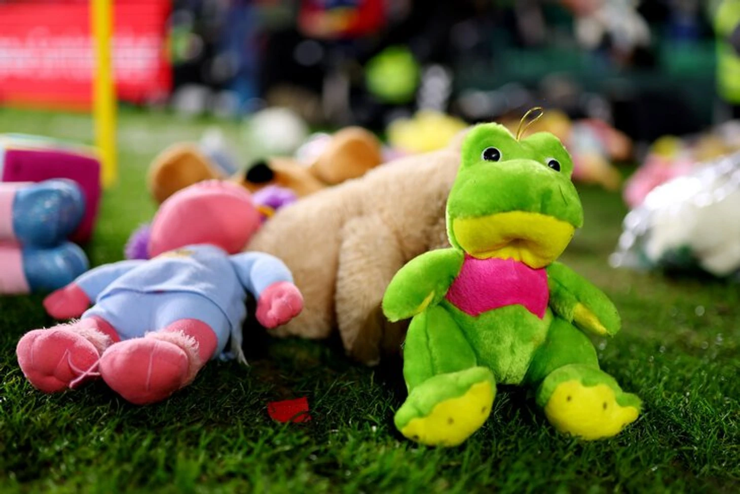 Огромных медведей, как в фигурном катании, тут все же не кидают. Хотя принести на стадион можно и такого, просто на входе есть игрушечный фэйс-контроль: слишком большие экспонаты просто сразу передают на хранение, чтобы потом распределять вместе со всеми брошенными с трибуны.