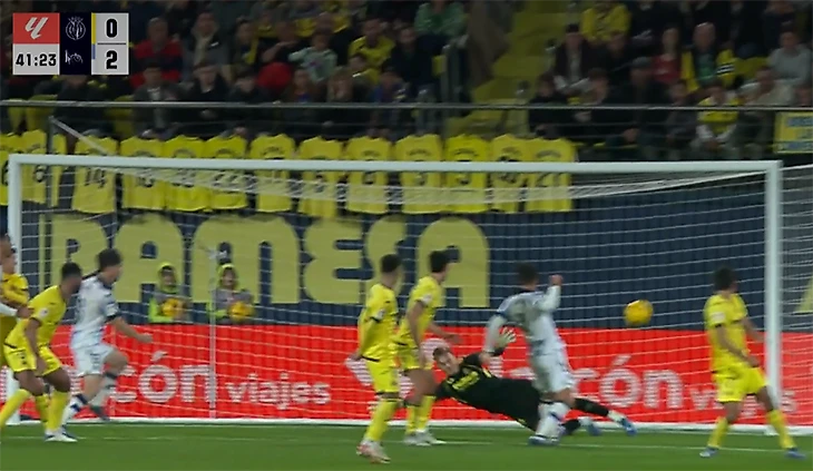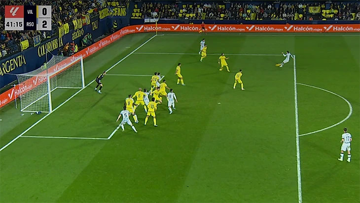 «Сосьедад» повел уже к 38-й минуте: подача Такефусы Кубо с углового, выше всех выпрыгнул Микель Мерино. Ошибка вратаря Йоргенсена – зачем-то вылетел из ворот.