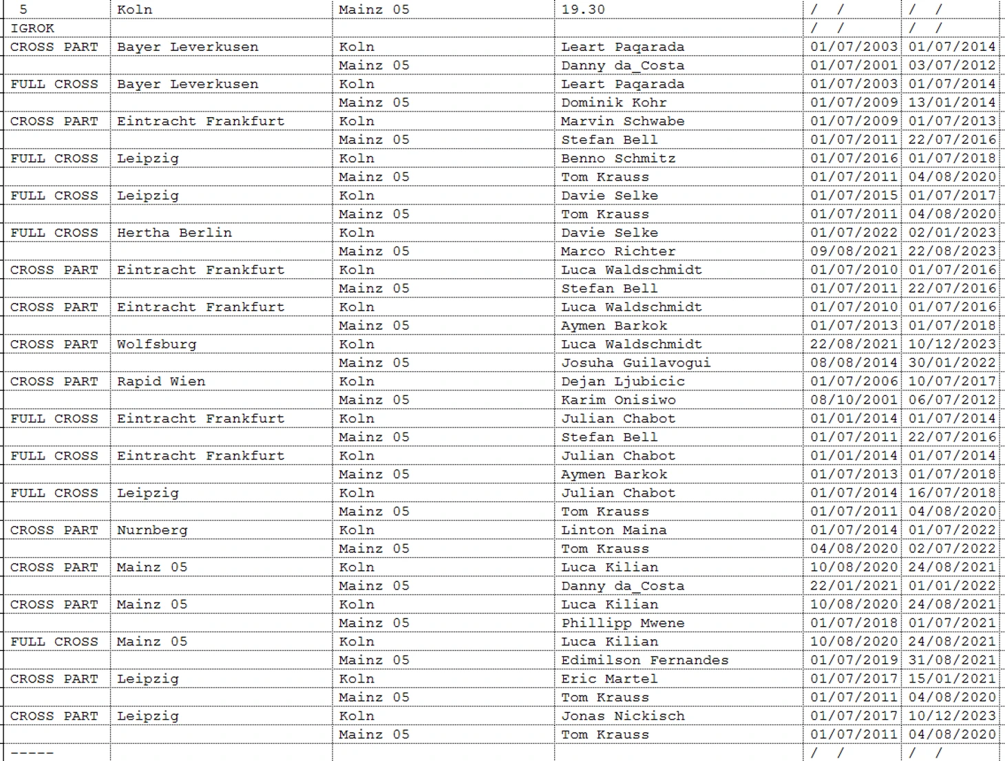 Вашему вниманию предоставляется информация 1.игроки выступали в прошлом за клуб-соперник. 2.Соперники играли за один и тот же клуб (возможно в разное время- NO CROSS)