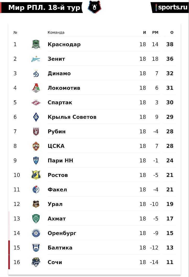 Итоги осенней части РПЛ. Ультракоротко