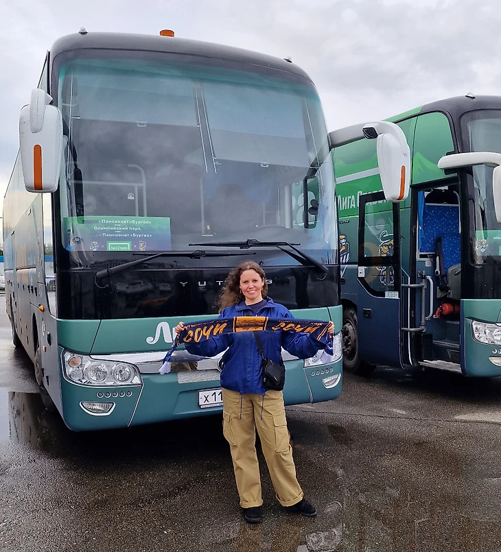 На последнюю игру с «Оренбургом» в дождливый воскресный день я решила отправиться на бесплатном автобусе от букмекерской конторы «Лига ставок». Давно не секрет, что для многих болельщиков поездка на матч из Центрального и Лазаревского районов Сочи может стать целым путешествием или по-футбольному «выездом». И еще довольно затратным как по времени, так и стоимости мероприятием. Так что бесплатный автобус, отправлявшийся в Олимпийский парк от остановки поближе к дому, чем обычно, оказался находкой.