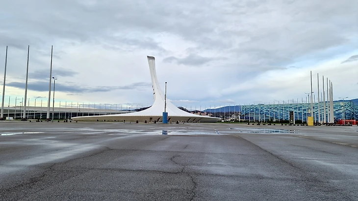 Олимпийский парк также был непривычно пуст. Возможно, внёс свои коррективы обещанный накануне проливной дождь.