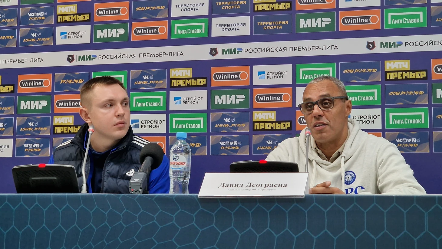 «Что касается игры, было два разных тайма. Первый тайм мне вообще не понравился: ни отношение, ни игра. Очень-очень плохо! Я не думаю, что мы были хуже, чем «Сочи» в первом тайме, но что касается нашей игры, у нас ничего не получалось. А что касается второго тайма, после замены команда проснулась, поменялось полностью всё: отношение, агрессивность, совершено другая была игра. А что касается нашего забитого гола, у нас этот момент появился. Хотулёв смог этот гол забить, пробить по воротам, мяч залетел, мы не уходим довольными, эту игру мы хотели выиграть, но лучше, чем проиграть», – поделился эмоциями главный тренер ФК «Оренбург» Давид Деограсия Маркес.