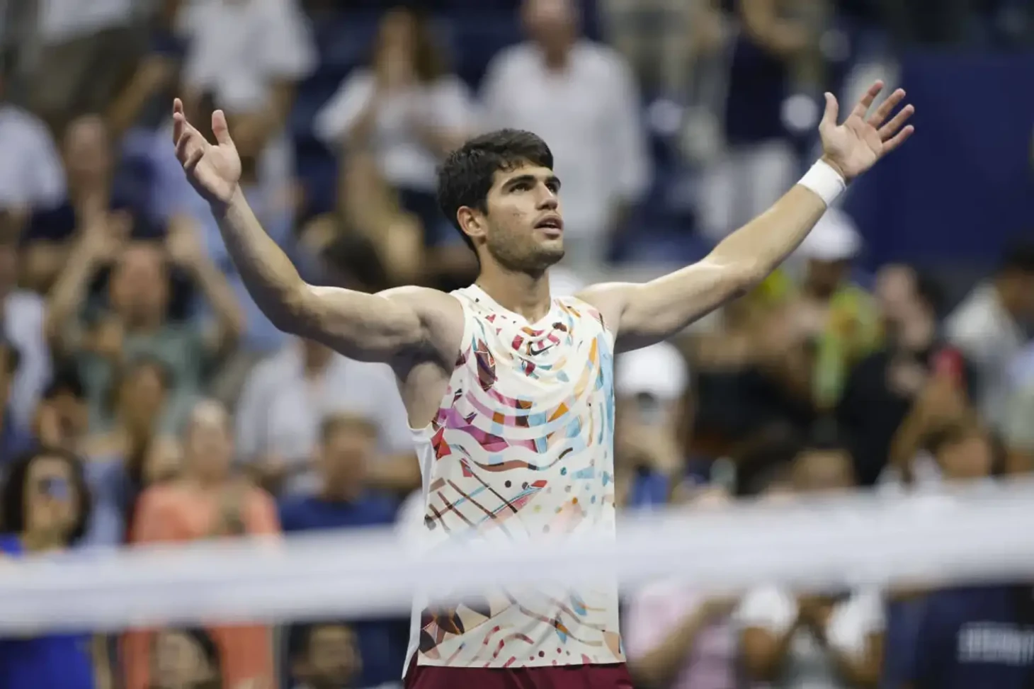 Это захватывает даже другие виды спорта: Карлос Алькарас вот так отпраздновал выход в полуфинал US Open. Позже он выложил фотографию празднования с подписью «Hey Jude».