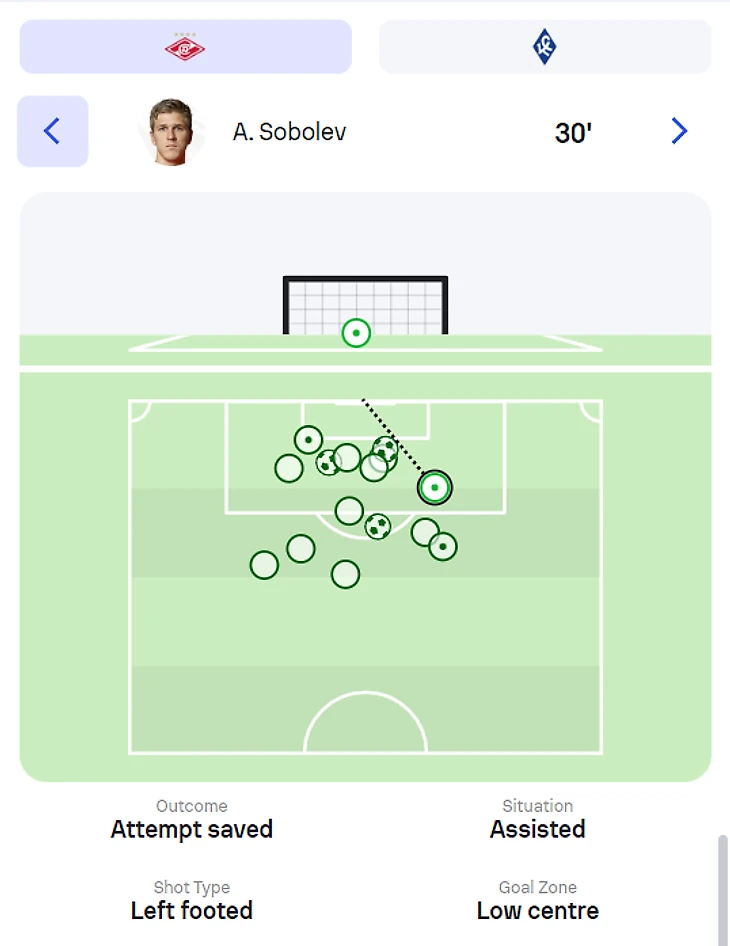 Соболев сделал за игру 8 попыток удара - рекорд сезона РПЛ.Александр был нацелен на ворота, что по итогу материализовалось в забитый мяч( для Соболева вообще в последнее время традицией стало отличаться против бывшей команды).