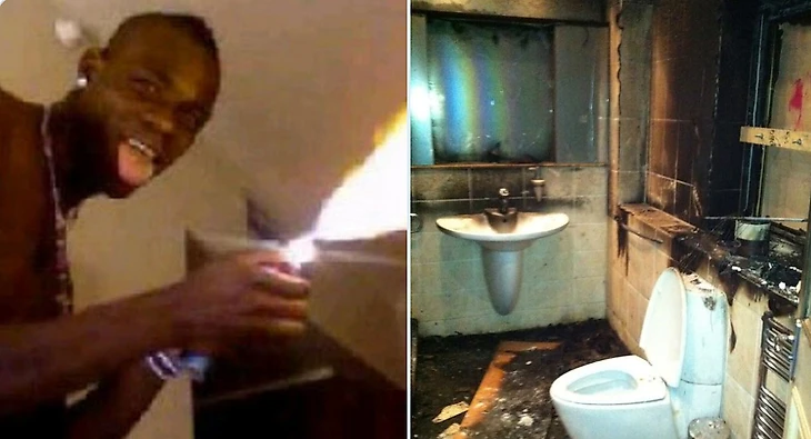 Два месяца спустя особняк Балотелли в Чешире загорелся за несколько часов до решающего столкновения «Манчестер Сити» с «Манчестер Юнайтед». Марио и его товарищи устроили фейерверк в ванной. Плитка и штукатурка слетели со стен, причинив ущерб в размере 400 000 фунтов стерлингов.