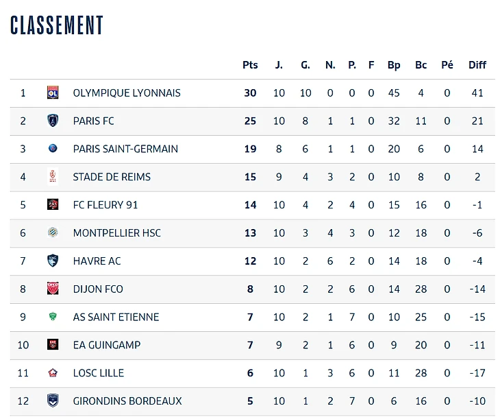 • А вот у его конкурента, «ПСЖ», дела не очень хороши: в воскресенье парижанки чуть не проиграли «Гавру». Инес Беняйя воспользовалась ошибкой Элизы де Альмейда и смогла реализовать выход один на один. Несмотря на явное преимущество «красно-синих», им удалось сравнять лишь в самом конце, и сделала это Грэйс Гейоро. Это её второй подряд гол на последних минутах. Столичная команда потеряла очки впервые с октября.