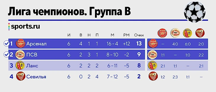 ● «Арсенал» с ПСВ сыграли вничью (1:1). Гол Эдди Нкетиа в конце первого тайма ценен как искусство центрфорварда, ответ Йорба Вертессена в начале второго – как пример атаки на скорости. Но для таблицы никакой разницы. Наверняка лондонцам даже важнее, что перед насыщенной концовкой декабря они сэкономили силы лидеров – например, вообще не выходил Букайо Сака.