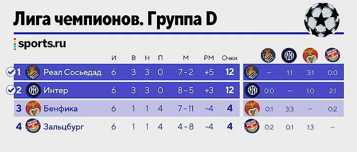 «Сосьедад» выиграл группу – с Захаряном в основе. «Бенфика» ярко вытащила себя в ЛЕ