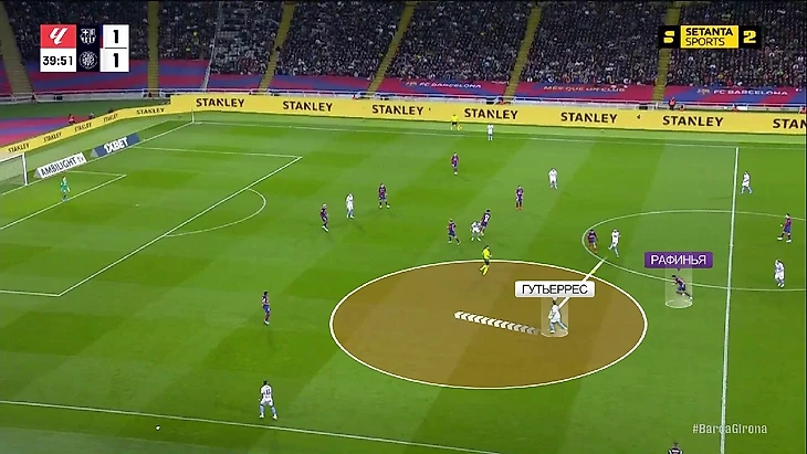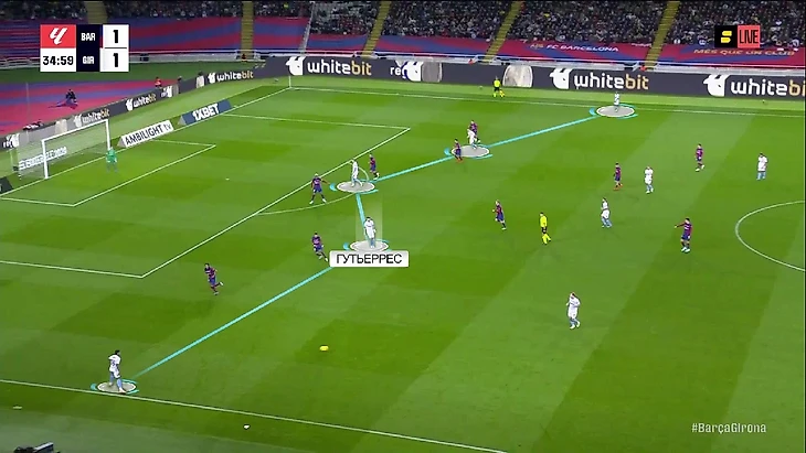 При розыгрышах «Жироны» Гутьеррес часто уходил в центр, и у «Барсы» возникали проблемы в прессинге: