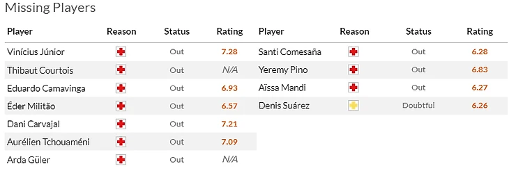 Впрочем вчерашняя игра с Ренном принесла Лодке не только позитивные эмоции: травму получил Фойт(6), который пополнил и без того многочисленный больничный отсек Субмарины, в который также может угодить не до конца здоровый Габбиа(5,5). Что касается Реала, то тут с заполняемостью лазарета тоже порядок, хотя например Аррисабалага(6,5) уже вернулся в общую группу и может вернуть себе место в старте.