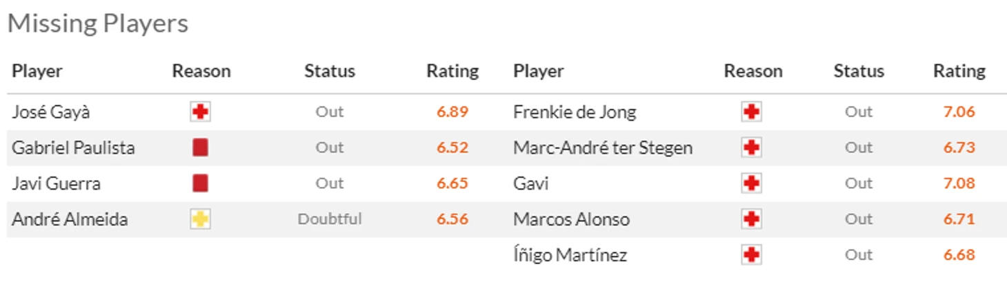 Впрочем определенная польза от тимбилдингов есть: например на волне новогодней эйфории в строй вернулся Френки Де Йонг(7,5). Что касается Валенсии, то она напротив аж на две игры потеряла своего лучшего полузащитника Хави Герру(6). Дерзкий юниор назвал арбитра Куадро Фернандеса не просто плохим, а очень плохим.. и теперь будет чилить аж до Нового года.
