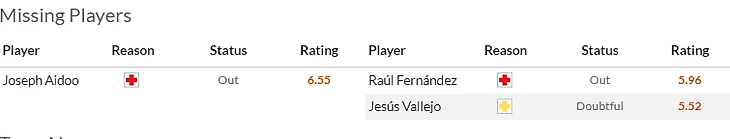 А вот у гостей под вопросом выход на поле восстанавливающегося после травмы Луиса Эрнандеса(5,5) и приболевшего Дарвина Мачиса(7).