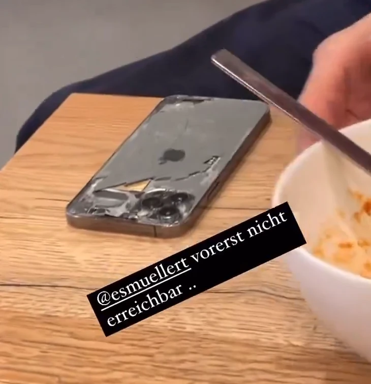 Но немца, похоже, не очень заботит материальный аспект жизни. Леон Горетцка заметил, что его одноклубник ходит с разбитым телефоном. Словом «разбитый» вряд ли можно в полной мере описать состояние гаджета.