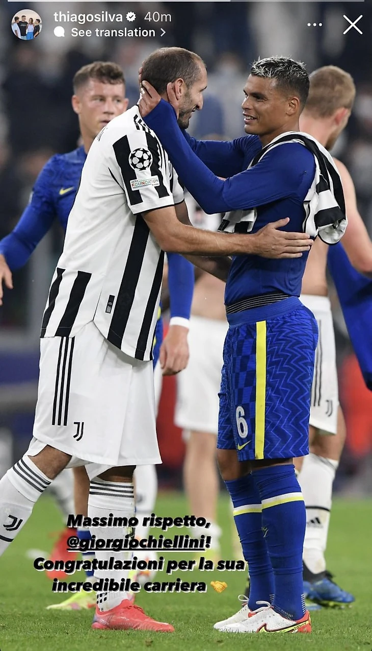 Тиаго Силва: «Максимальное уважение! Поздравляю с твоей невероятной карьерой».