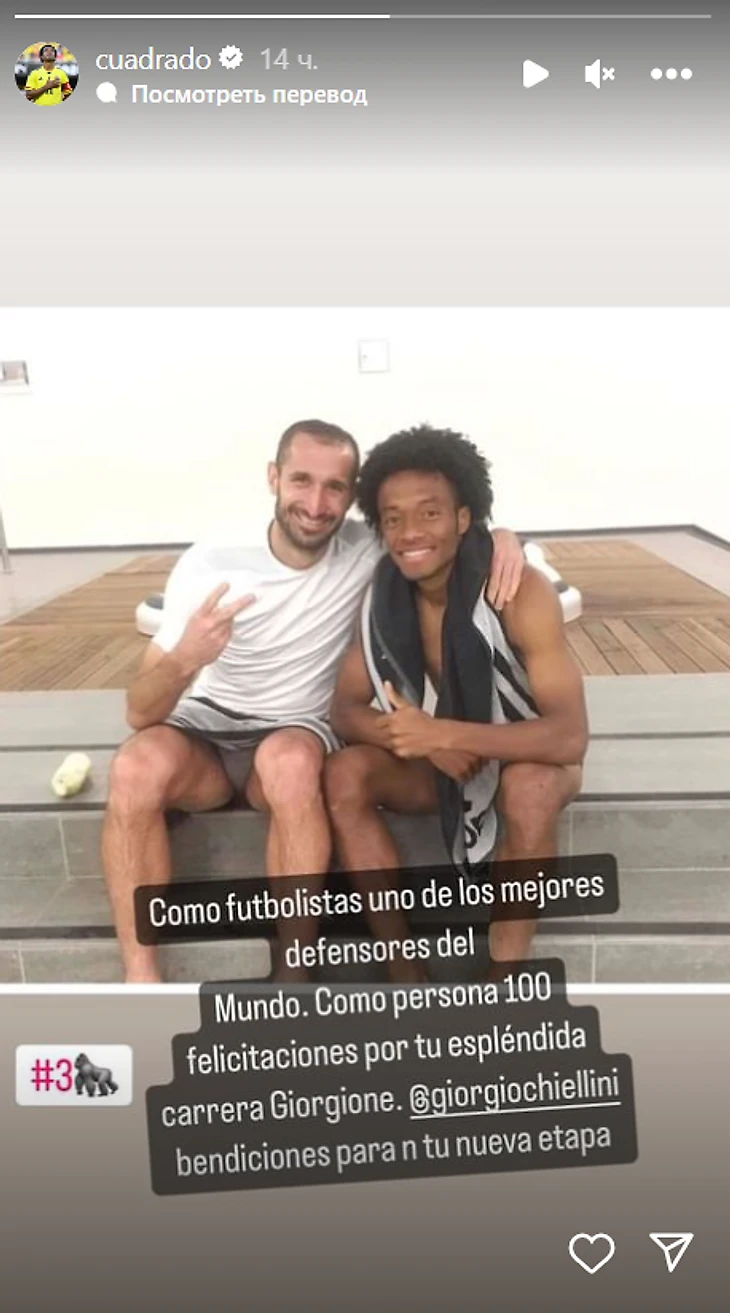 Хуан Куадрадо: «Как футболист − один из лучших защитников, еще и человек на все сто. Поздравляю тебя с прекрасной карьерой. Удачи на новом этапе».