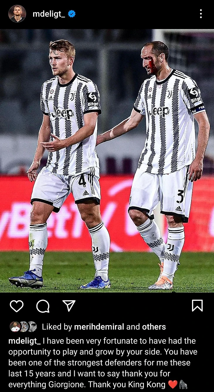 Маттейс де Лигт: «Мне очень повезло, что у меня была возможность играть и расти рядом с тобой. Для меня ты был одним из самых сильных защитников за последние 15 лет, и я хочу сказать тебе спасибо за все, Джорджоне. Спасибо, Кинг Конг»
