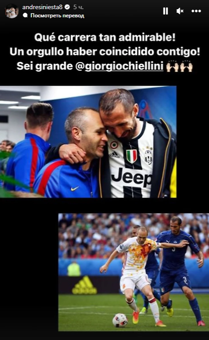 Андрес Иньеста: «Какая замечательная карьера! Горжусь тем, что знаком с тобой! Великий».