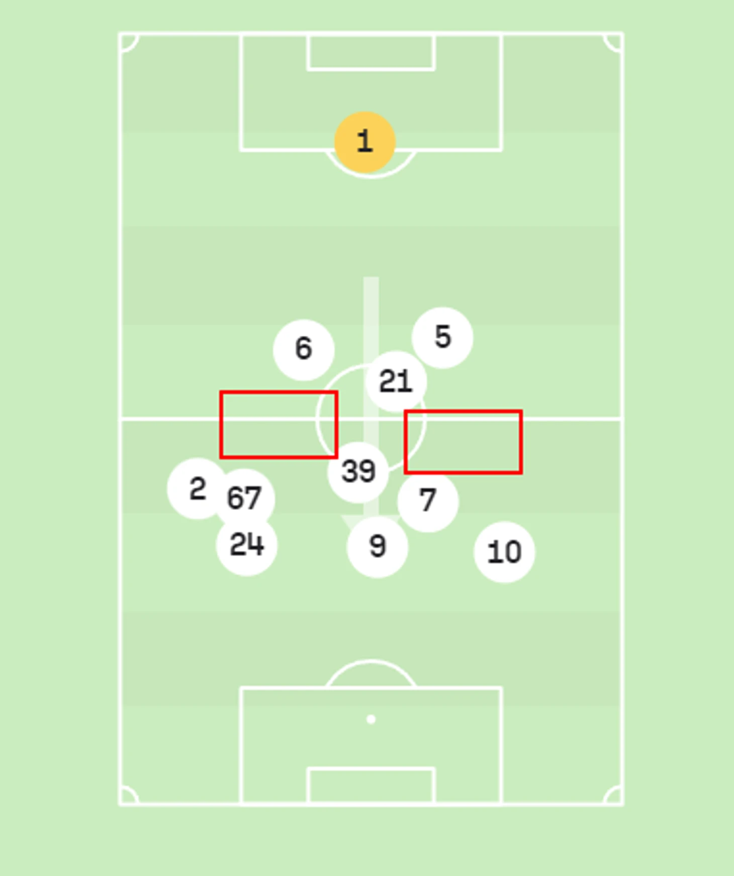А может это вообще был хитрый план Пиоли: заманить на фланг соперника и убежать на контре через центр, где играл Эрнандес. Хмм... Если это так, то Пиоли - гений. Ведь центра у сорок действительно не было.