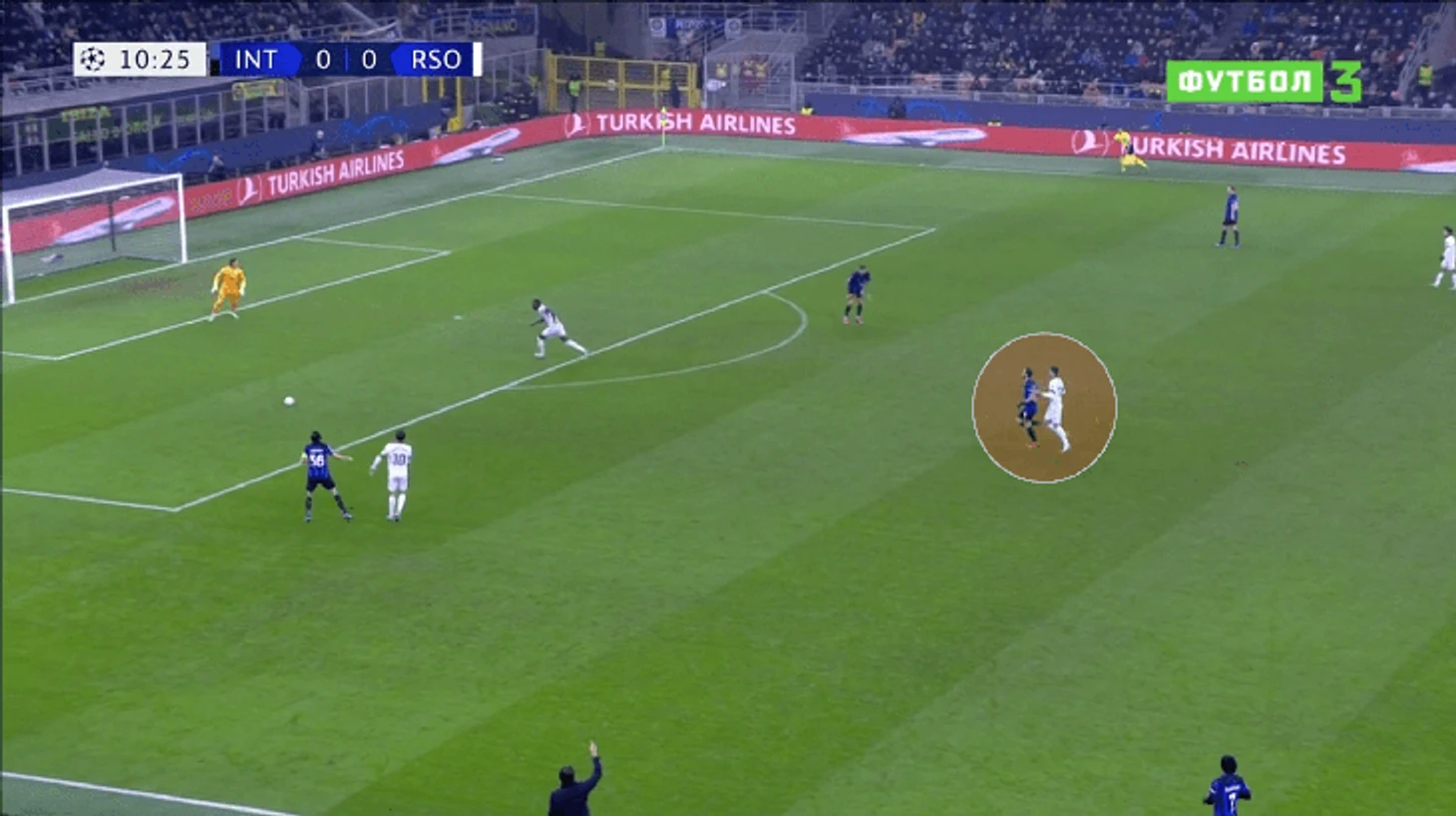 И часто открывался таким образом, чтобы заставить центрального защитника, который в теории мог бы его прикрыть, принимать максимально неприятное решение – не просто выдвигаться, а вытягиваться в другую часть поля по диагональной траектории: