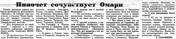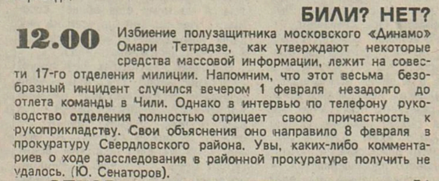 Февраль 1993 года. Все команды готовились к старту второго чемпионата России. Динамовцы успели вернуться из Германии и через пару дней должны были отправиться в Чили. Готовился к отъезду и Омари Тетрадзе, но все его планы спутала московская милиция.