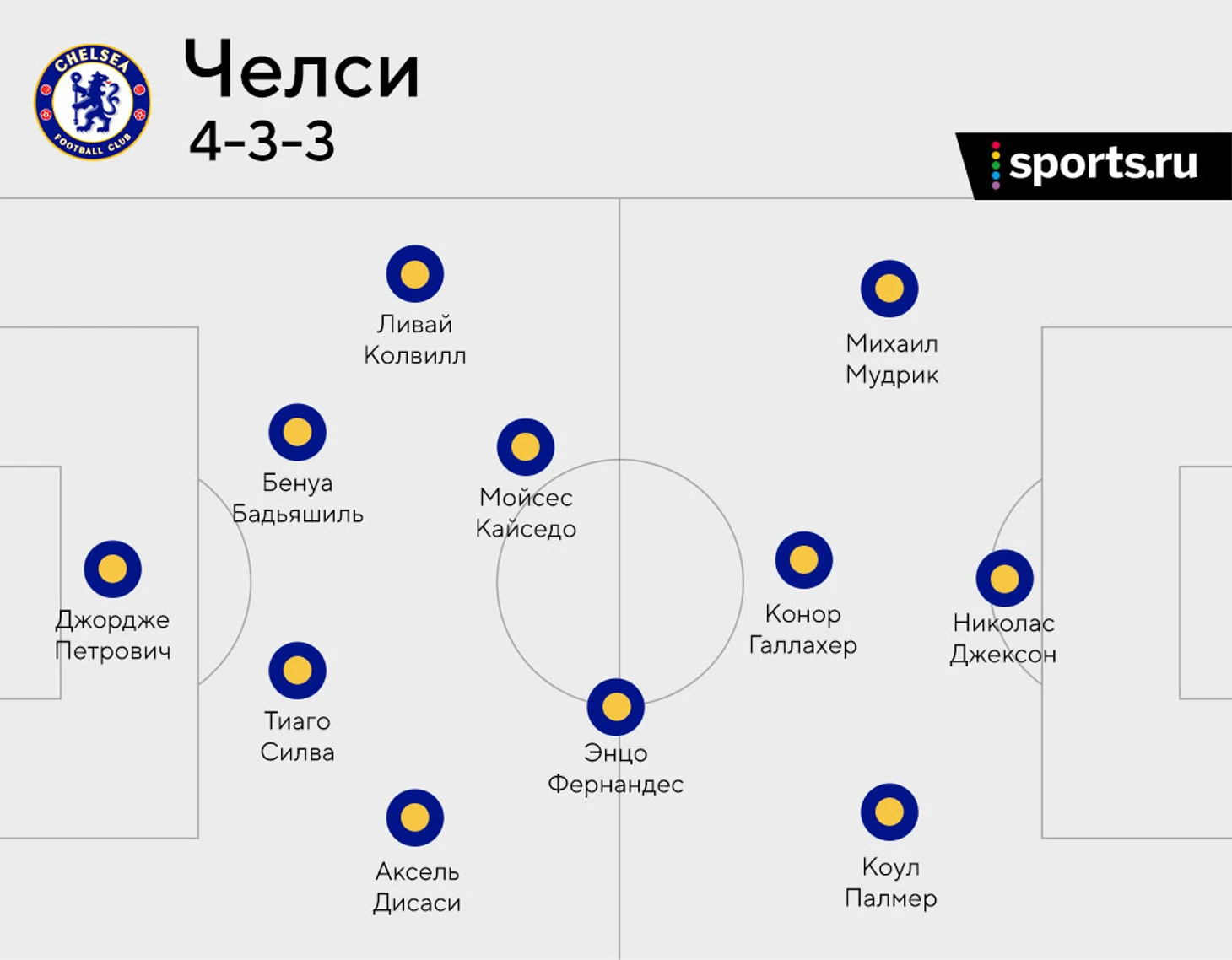 Центр поля пока и изменить не получится, а вот в атаке начинается головная боль. Николас Джексон в прошлом матче вышел только во втором тайме. Армандо Броя смотрелся неплохо, но голов не забил, а это значит, что с высокой долей вероятности Джексон снова выйдет в старте. Рахим Стерлинг и Кристофер Нкунку могут начать на скамейке, а во втором тайме выйти вместо Михаила Мудрика и Коула Палмера. Хотя уровень взаимодействия Палмера и Стерлинга может оставить на скамейке Мишу.
