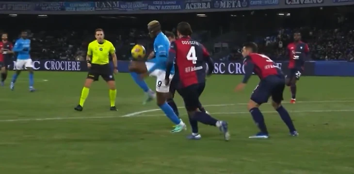 В матче 16 тура Серии А «Наполи» дома принимал «Кальяри». Команда Вальтера Мадзарри открыла счет только на 69-й минуте, а спустя три минуты пропустила. Победный гол с передачи Виктора Осимхена забил Хвича Кварацхелия − 2:1.