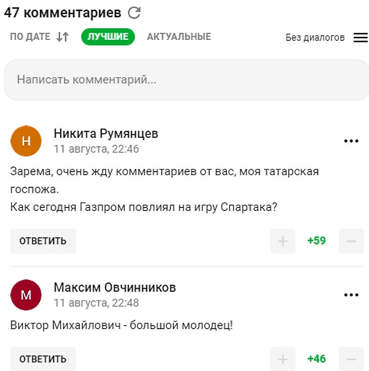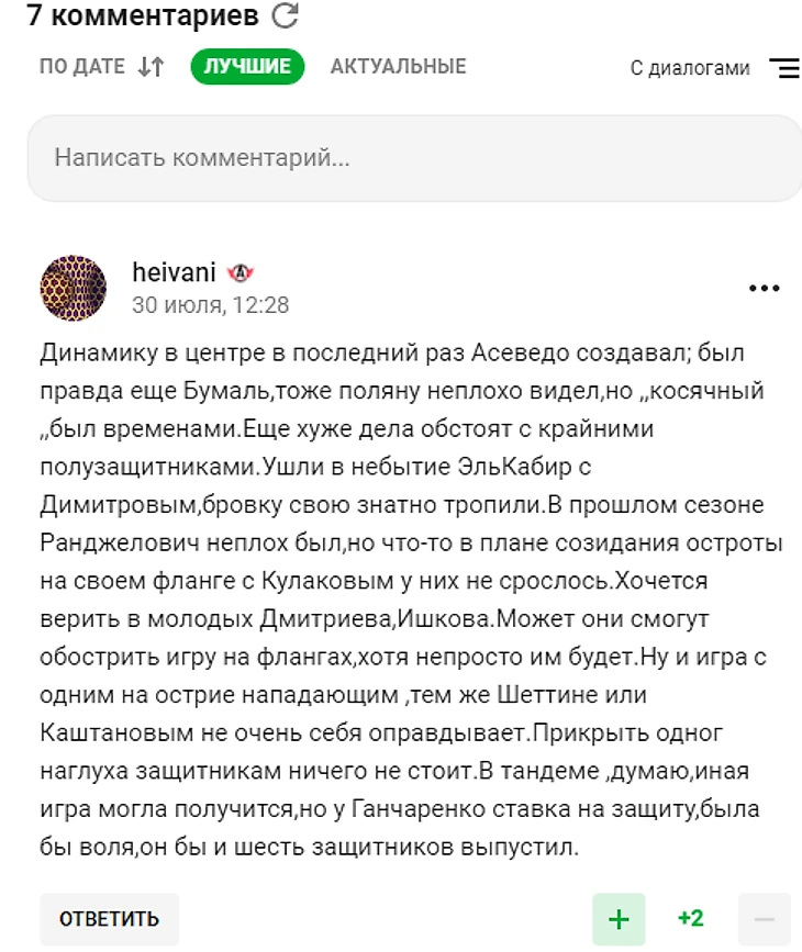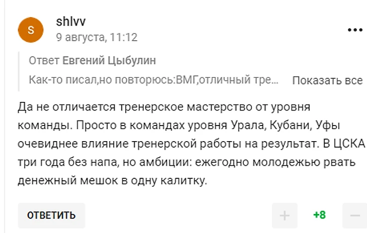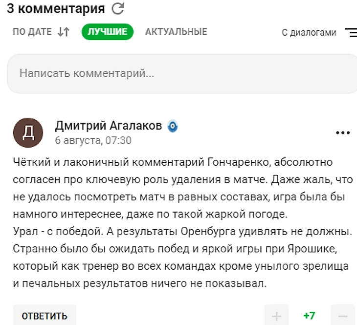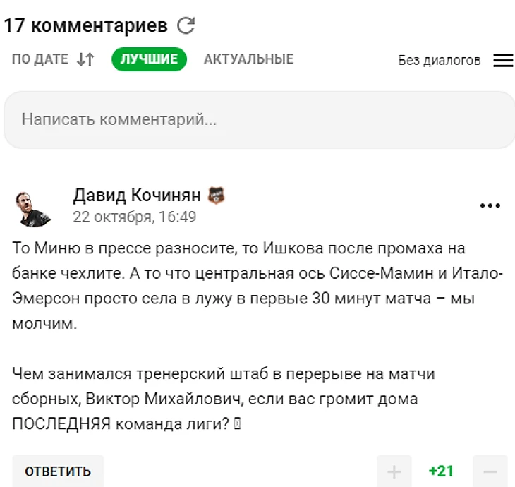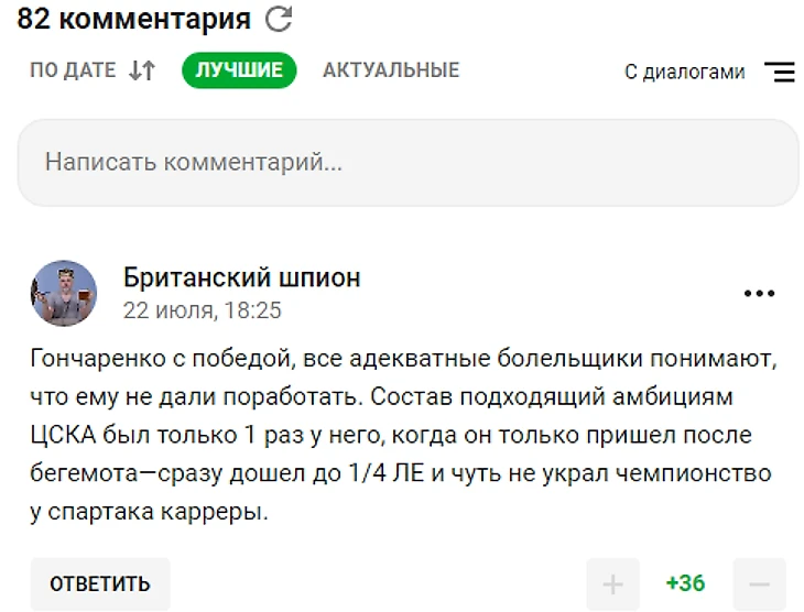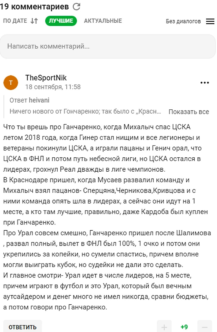 Лучшие комментарии пользователей Sports.ru к послематчевым комментариям Гончаренко
