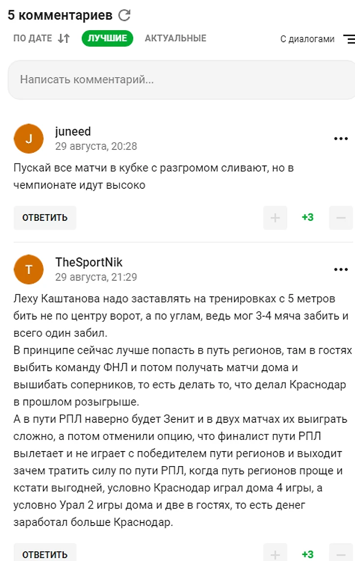 Сейчас смотрю игру Урала, в каждом матче они играют неплохо, никто их в принципе не переигрывает, но судейская удавка четко на них накинута, там 3 пенальти кажется дали только за попадание мячом в руку, причем специально соперники бьют так, но условно с Локомотивом борцовским приемом уложили в штрафной Щеттине и полная тишина, только игроки Локомотива между собой чуть не передрались, они то верно оценили момент, пенальти был там и арбитр просто им помог.
